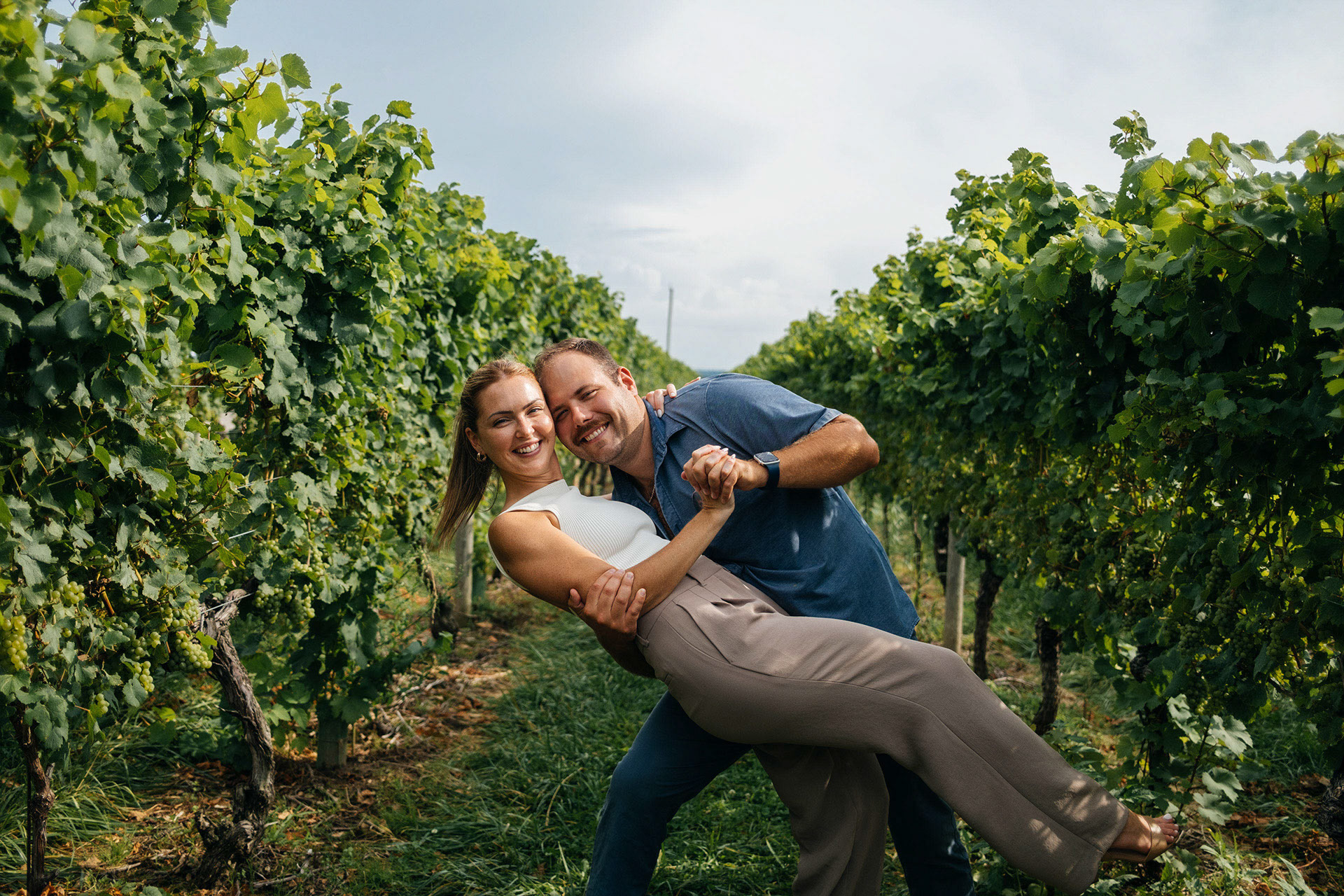 Had a quick impromptu shoot while on a stop at Trius Winery during Jen’s 30th birthday wine tour. It was our last stop, and Jen asked if I could grab some shots of her and Mike in between the grapevines. Super happy with how these turned out – such a beautiful setting for a fun moment!